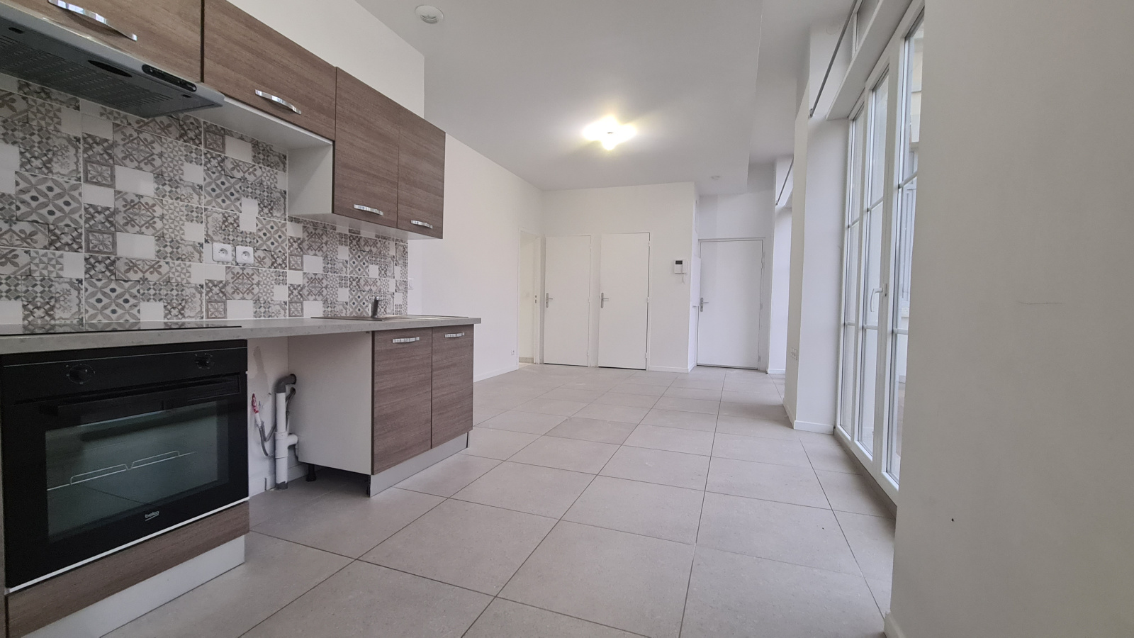 - Pièce de vie spacieuse : Profitez d’un séjour/cuisine de 24 m² baigné de lumière grâce à son exposition plein sud et sa baie vitrée. La cuisine moderne et entièrement équipée comprend 10 espaces de rangement, une cuisinière électrique, un réfrigérateur et congélateur encastrés et s’ouvre sur la pièce principale pour plus de convivialité.