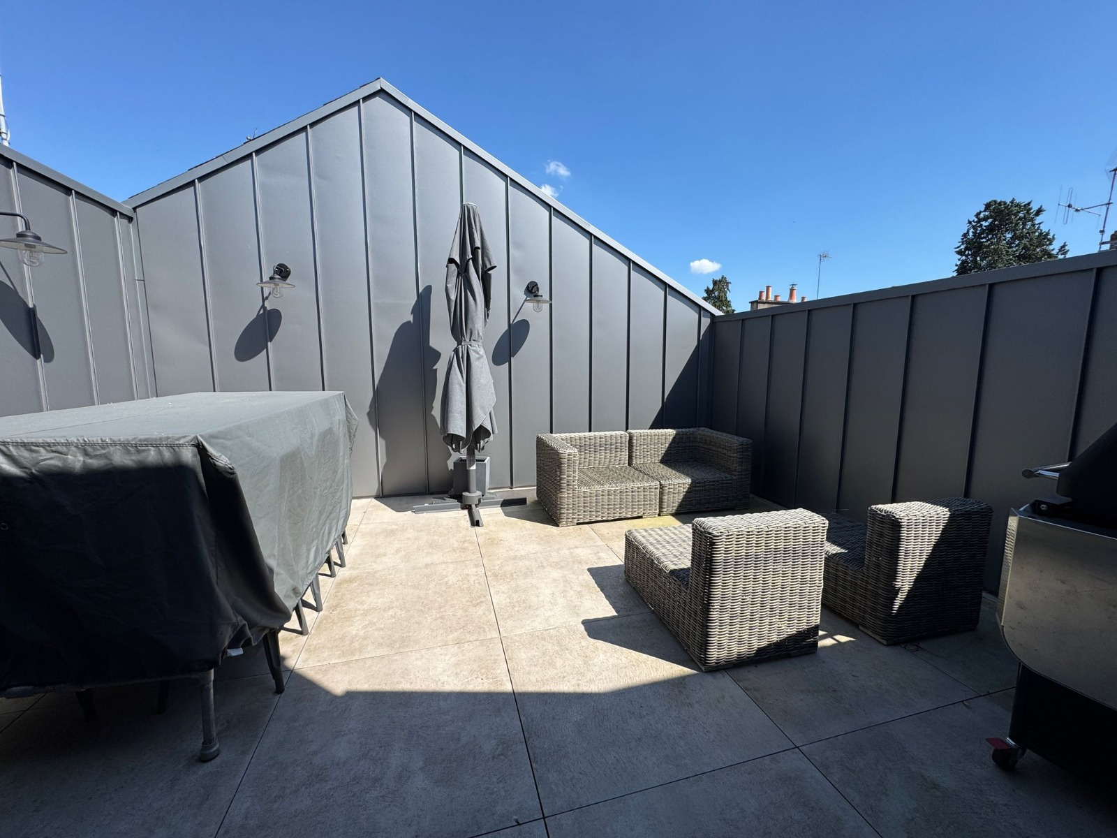 - Terrasse intimiste avec salon d’été, idéale pour vos moments de détente ou dînatoires
